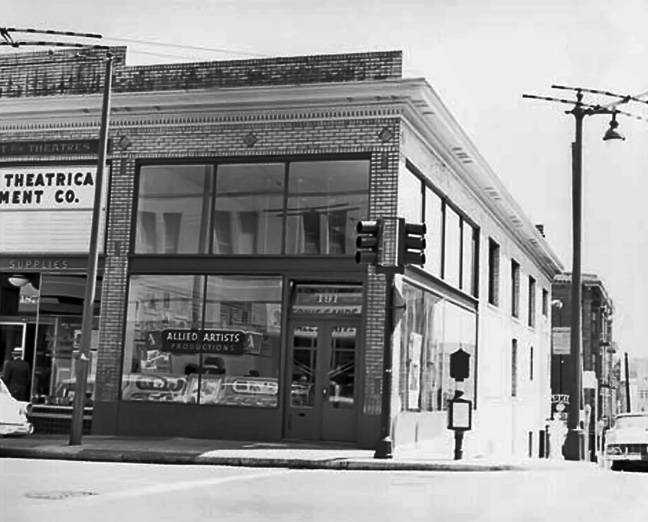 Many early film exchanges were located in Tenderloin buildings because of their proximity to Market Street cinemas; however, nitrate film† was explosively volatile, so ordinary buildings were dangerous places in which to store movies, especially large quantities of them. Although delayed by political inertia, the ’06 conflagration notwithstanding, by 1911 was born the first of the Tenderloin’s many film exchange buildings—fireproof, reinforced concrete structures specifically designed for storing film.