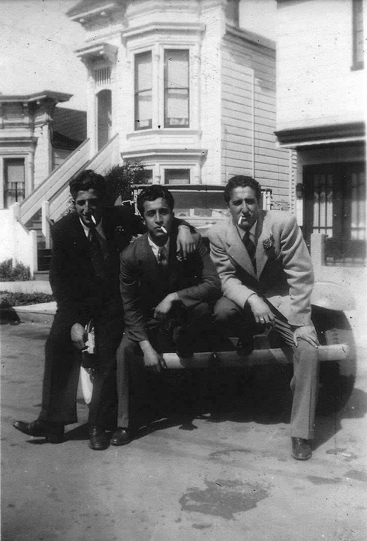 Regina's dad at right, brother at left, and counsin Busalacchi who died young in the middle, c. 1938.