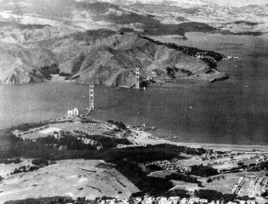 The Presidio, Marin Headlands and the Golden Gate Bridge under construction in 1937.