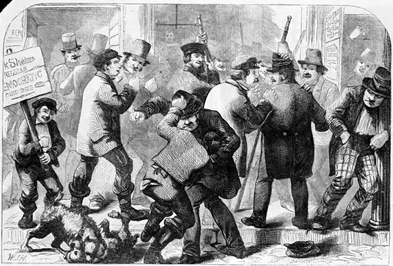 Political success, given such a system, required at the very least a corps of faithful party workers, enough to staff every polling place and distribute tickets, plus sufficient financial resources to print a supply of tickets. Campaigning usually became a matter of identifying ones supporters and mobilizing them on election day. Here, again, parties relied on a large corps of workers. The politics of mobilization implied as well the politics of organization. Organization began at the grassroots, with political clubs scattered throughout the neighborhoods of the city. Often located above or in back of a saloon, clubs included a range of social activities along with those of a political nature. All clubs affiliated with—and were sometimes created by—one of the major political parties. Sometimes clubs had geographic jurisdictions; others claimed ethnic or occupational constituencies. Still other organizations remained informal, based on a set of personal contacts at a place of work or recreation. Firehouses, militia companies, and neighborhood saloons all typically served as foci for political organizations.(3)