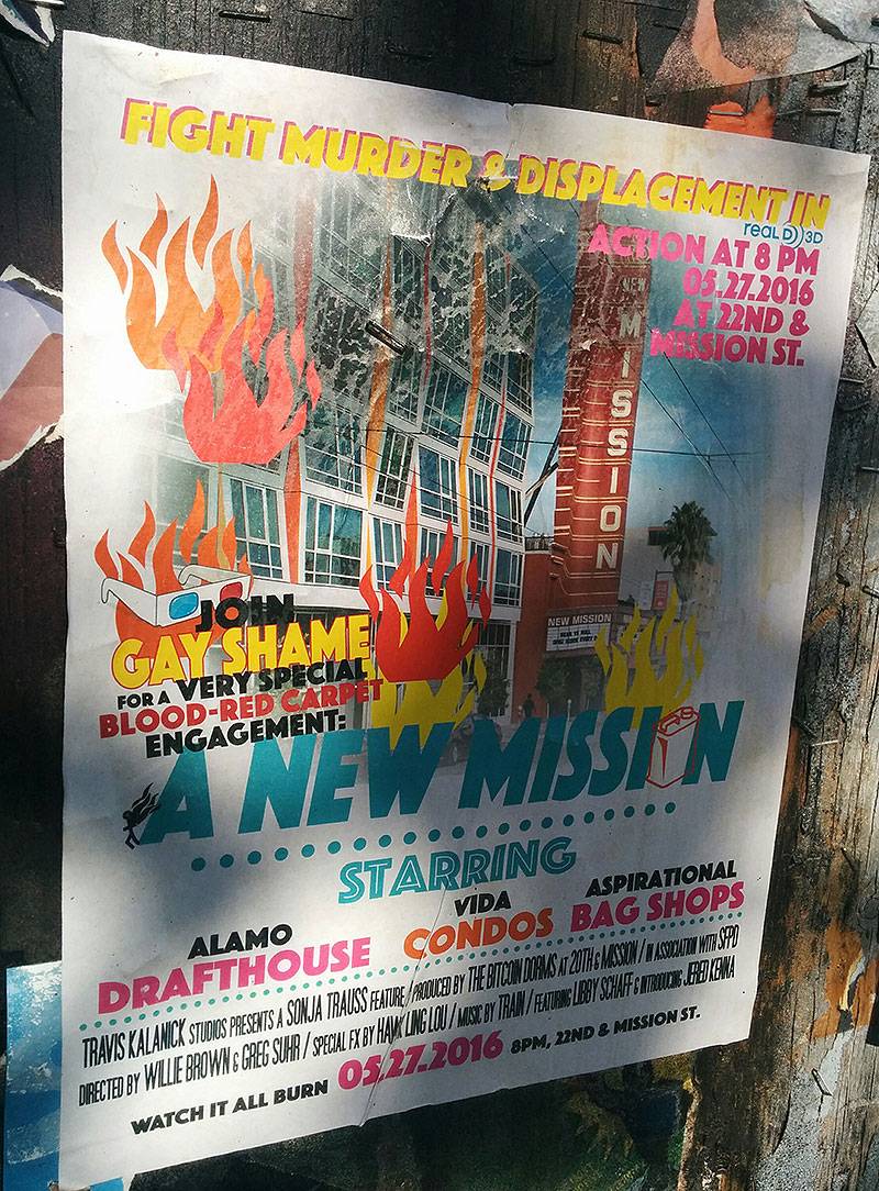 In 2016, Gay Shame was fully engaged in campaigning against gentrification in the Mission.