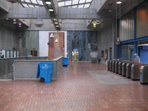 Glen Park station is designed in the same brutalist vernacular as BART's original stations, but has a beauty and inner calm that none of the other stations achieve. Born used the materials of the station – concrete, marble, granite, glass, stainless steel, and fiberglass – with great finesse.