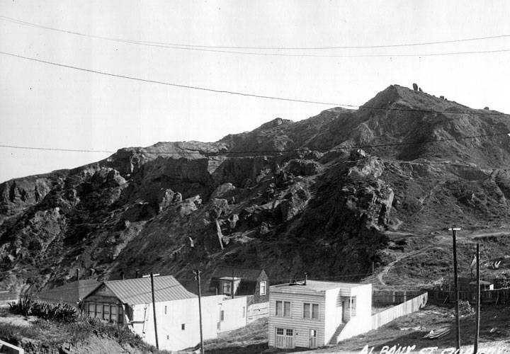By 1899, they had removed tons of rock and produced tens of thousands of bricks, creating the blasted landscape at left (seen from the hill between Eureka and Noe Valleys just west of Dolores Park). The Gray Brothers also quarried Telegraph Hill and Billy Goat Hill above Noe Valley.