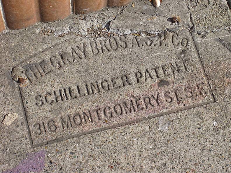 Gray Brothers stencil on 2nd Street near Minna before street renovations removed it in the early 21st century.