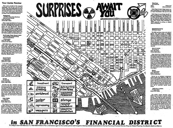 San Francisco's financial district received unwanted exposure of many of its investment portfolios on March 22. Antinukers escorted tourists through the corporate jungleland, disrupting business as usual.