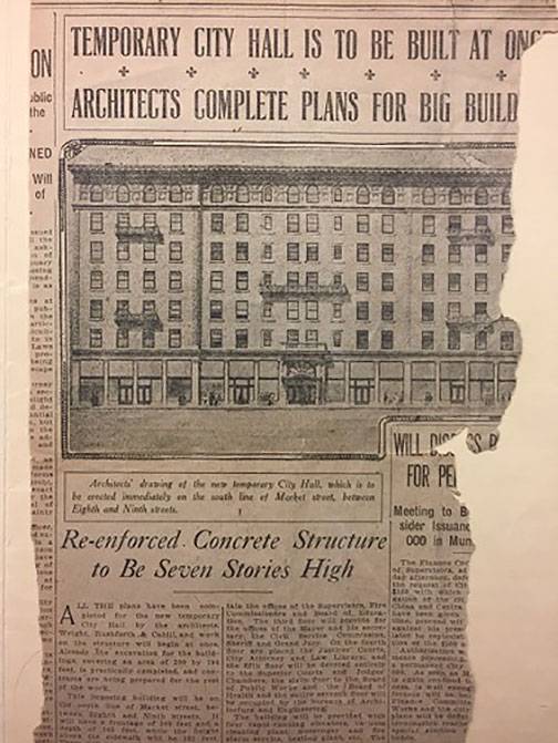 SF Chronicle Article on the creation of the temporary city hall, December 17, 1910.