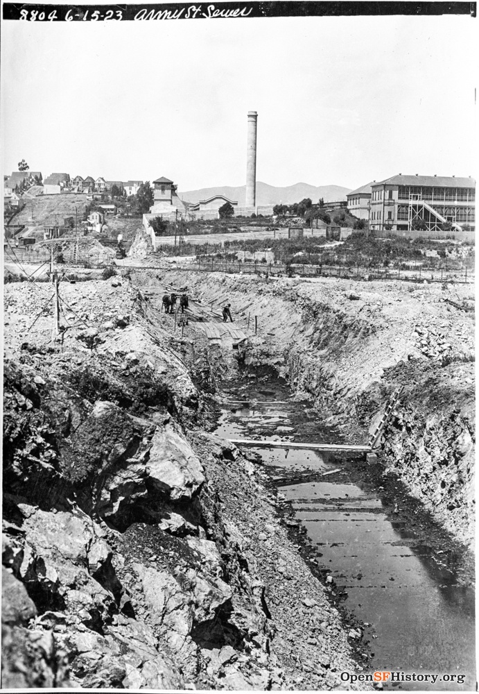This incinerator in the former wetlands of Islais creek between Potrero Hill and Bernal Heights was supposed to solve San Francisco's solid waste disposal problems in the early 1920s. But it never worked, and after Brisbane Lagoon was taken over for San Francisco's landfill the incinerator was eventually demolished.