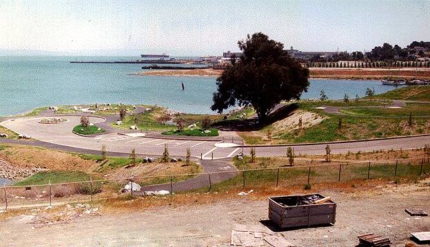 The India Basin park seen in 2005, mudflats and native plants beginning to fill the surrounding waters.