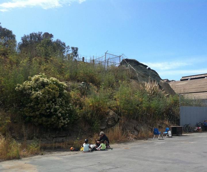 2014 view of the foot of Irish Hill during a rare activation of this space as a community market organized by the developers of Pier 70. PG&E tanks on left.