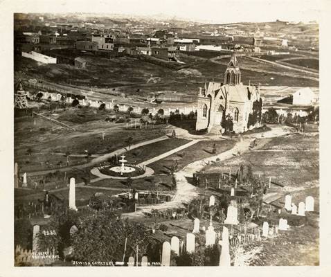 Mission Park (later called Dolores Park) as a Jewish Cemetery in 1876. Opened in 1860, closed in 1888, most remains moved from 1890–1895.