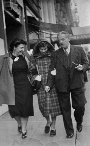 My grandparents Emma Loewy and Louis Blumenthal, and my mother Marcia Blumenthal Kupfer in the late 1940's on the streets of San Francisco.