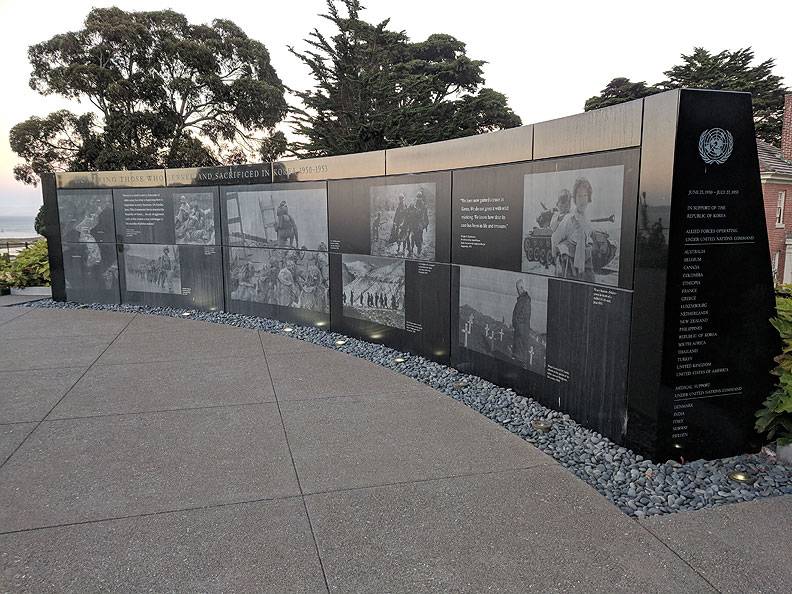 During the Korean War (June 25, 1950 - July 27, 1953), approximately 37,000 Americans and one million Koreans lost their lives. In honor of those who served and sacrificed during this war, on August 1, 2016, a new Korean War Memorial opened at the Presidio.