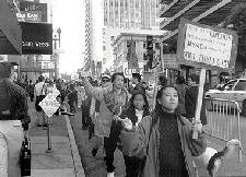 Picket line in front of Jessica McClintock's boutique near Union Square. Photo: Rick Gerharter