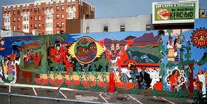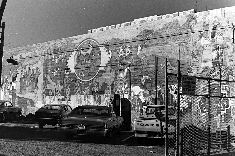Latinoamérica mural on Mission Street midway between 25th and 26th, 1974.
