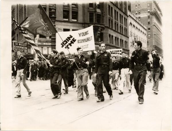 Members of the Young Communist League marching during May Day Parade, 1935.