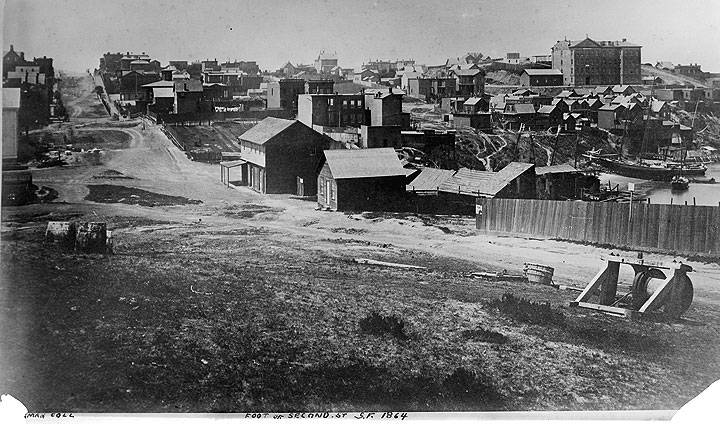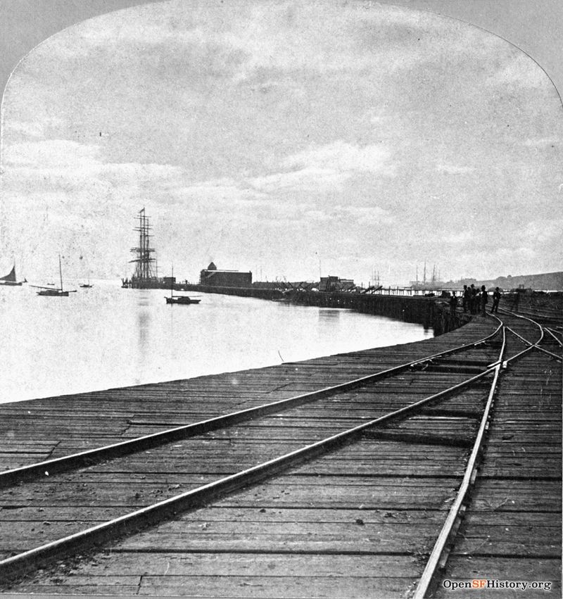 The heady prospect of San Francisco’s peninsula becoming the terminus for the transcontinental railroad, coupled with the new flow of capital from the Comstock, injected new life into real-estate speculation, especially schemes affecting the southern waterfront. The rallying cry of real-estate promoters of the ’60s was “Montgomery Street Straight!”