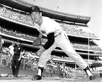 Given O’Doul’s impact on Japanese baseball, it is likely no coincidence that the first Japanese player in the Major Leagues played for the San Francisco Giants. Not only had O’Doul created strong ties between the city and Japan, but he had promoted the Giants’ brand in Japan. Japan’s most famous and successful team, the Yomiuri Giants, was named in tribute to O’Doul’s last MLB team, the New York (later San Francisco) Giants; their logo was a direct copy. Building off of O’Doul’s groundwork, Giants’ owner Horace Stoneham worked with Japanese-American scout and California native Tsuneo Harada to bring three extra players from the Nankai Hawks to the Giants’ spring training for seasoning. One player, Masanori Murakami, excelled in both spring training and his subsequent assignment to Fresno, and was rewarded with a promotion to the majors in late August. He debuted in New York’s Shea Stadium, pitching a scoreless inning and receiving a loud ovation from 40,000 opposing fans.