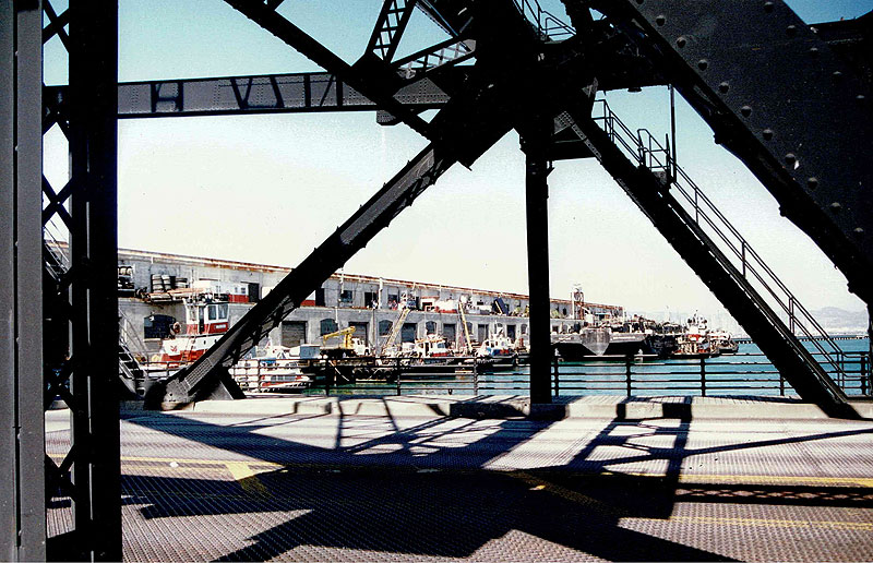 Before Giants fans strolled the Portwalk adjacent to AT&T Park, stevedores and switch locomotives plied the same stretch of pier to move cargo between freighters moored in the China Basin channel and the warehouse located where the ballpark stands today. Pavement set with plaques commemorating the feats of Giants stars has replaced the train tracks, and the stadium’s right field wall mimics the warehouse’s arched windows. On game days, in what is now known as McCovey Cove, ferries deliver fans to the park and kayakers vie for splash hits where a drydock, perhaps on its way to being scrapped, temporarily floated.