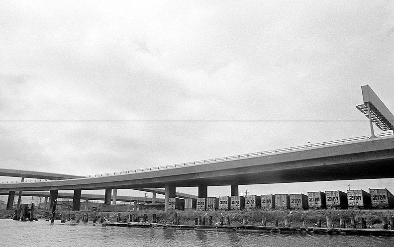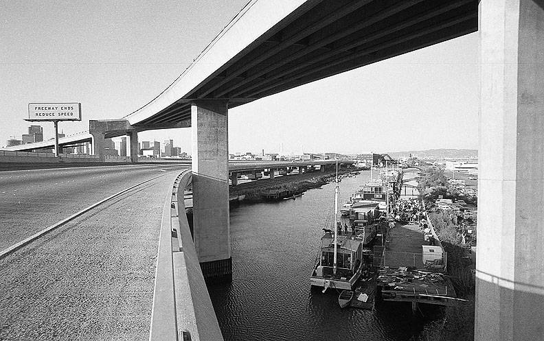 View of houseboats in Mission Creek from 280 overpass (now demolished), looking east.