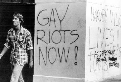 Five days before the riot I was at Carl's apartment in the Castro. He was counting out piles of flyers for the Harvey Milk birthday celebration, scheduled for May 22. Carl was checking off piles of flyers on a list of neighborhoods and locations throughout the city. "I'm just afraid that the verdict will come out that day. Honey, I'm afraid we're going to have trouble." Last weekend in the Castro a cop with a reputation in the neighborhood for being an asshole tried to arrest some poor character for stapling leaflets up on telephone poles. It led to a full-fledged confrontation right there, Saturday afternoon, hot spring day in the teeming Castro. Cops call in reinforcements, then, faced off by a crowd of several hundred gay men pouring of the bars, shouting "DAN WHITE WAS A COP! DAN WHITE WAS A COP!" And the cops end up retreating up Castro Street, each step back they take instantly filled by a surge of the crowd, pushing forward.