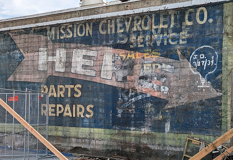 Old scaffolding advertisement, First Street near Mission.