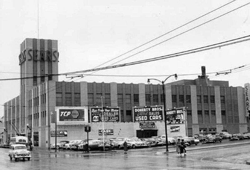 View north from the front of the Sears building near Mission and Cesar Chavez (then Army), 1956.