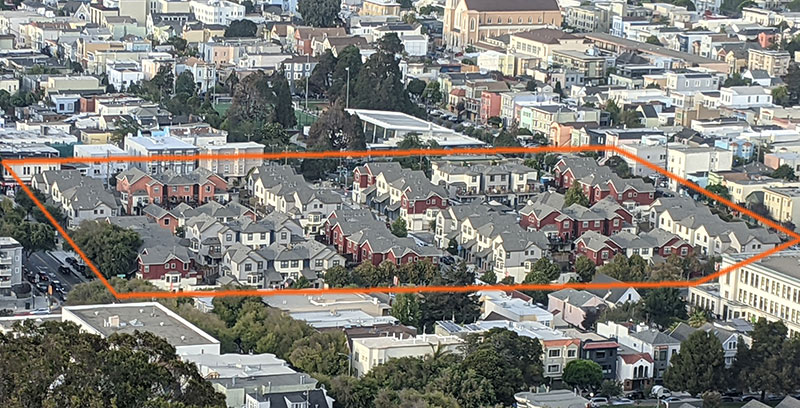 Bernal Dwellings as seen from Bernal Heights, 2021.