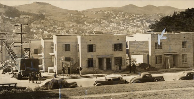 Holly Courts under construction on west slope of Bernal Heights, March 1940.