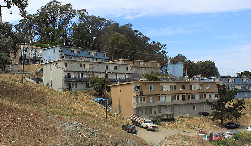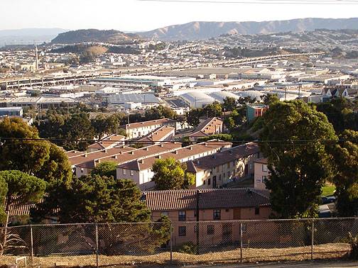 Potrero Terrace housing project from hillside above, looking south, 2008.