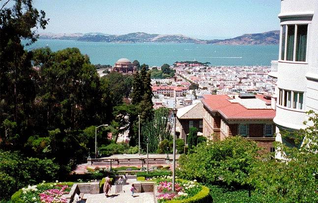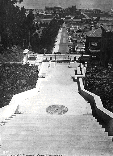 Looking north down the Lyon Steps, 1997, from the corner of Lyon and Pacific, adjacent to the southeast corner of Presidio.