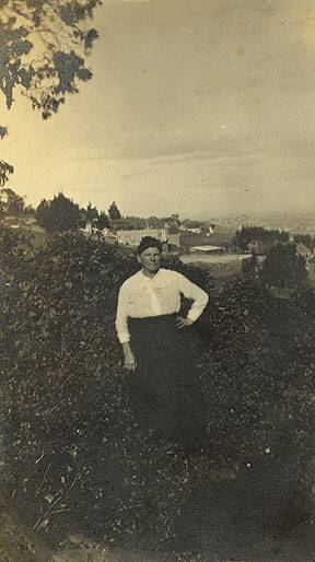 We're working on our Buckley family history. This photo was taken at my great-great-grandmother Ellen Sweeney Buckley's farm at 1063 Corbett Street (not far from the cross of 24th and Corbett, above the Portola Observation Point seen in the rest of the photos on this screen). From the details from my great-aunt, my great-great-grandmother and great-great-grandfather operated the tollhouse.