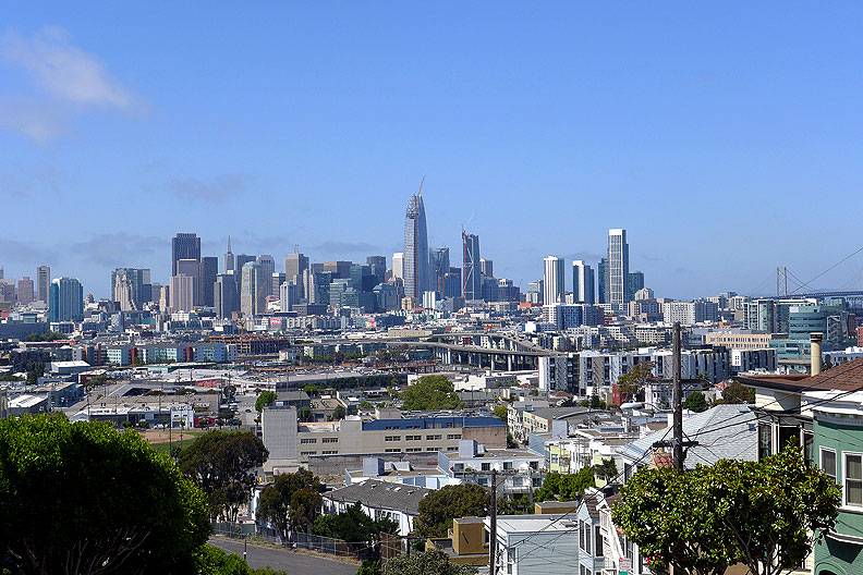 Similar view of downtown from Potrero Hill 25 years later, September 2019.