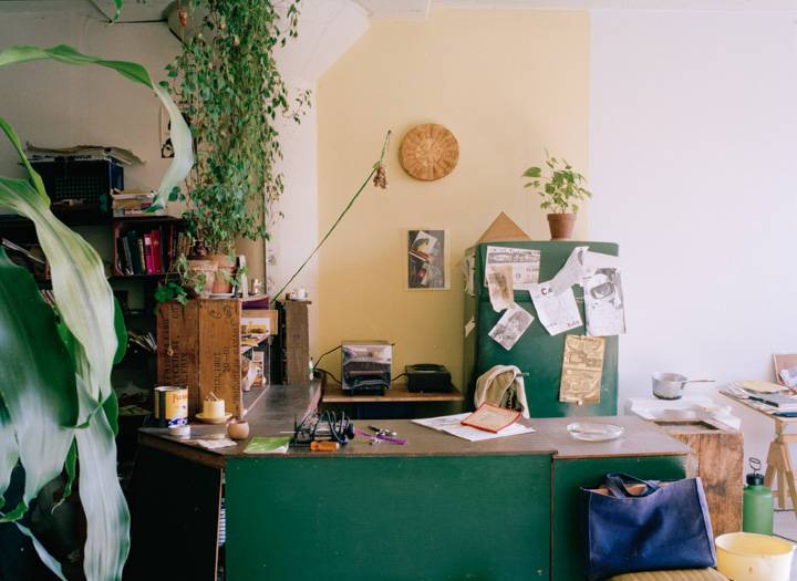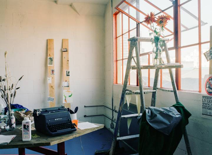 I got two-and-a-half bays. (A bay is the space between four pillars, 17' by 17' or just shy of 300 square feet. The ceilings are concrete and 12 feet above a brick floor.) Rent, I discovered, varies every month according to the current population, and is figured in terms of a Building Maintenance Unit. A BMU is usually about $60 for one adult. You also pay a Space Rate Unit of about $17 per bay. My rent now is $125 a month. I am also required to do three hours of work each week on the Building Maintenance rotating job-assignment list. This includes mopping floors, cleaning bath rooms, front desk duty and laundry room maintenance.