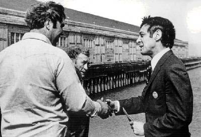 Harvey Milk talking with some Longshoremen during a campaign.