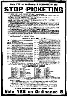The Chamber of Commerce successfully sponsored a municipal ordinance in 1916 banning picketing.