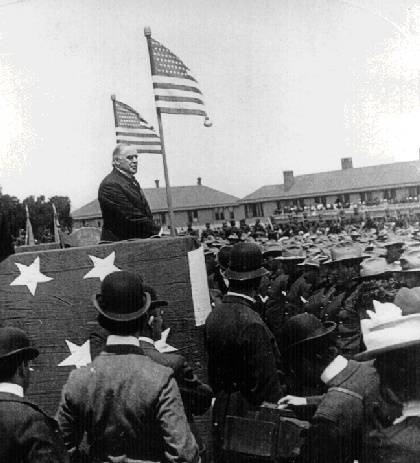 President McKinley addresses troops returned from the Philippines in the Presidio in 1901.