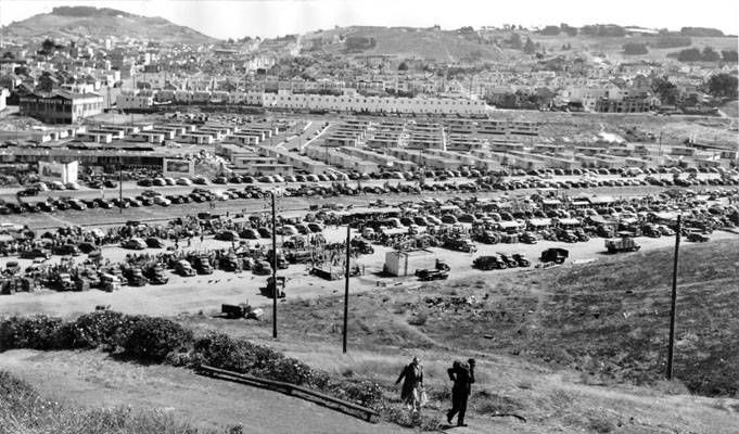First Farmers Market at Market, Church, and Duboce Streets, c. 1943.
