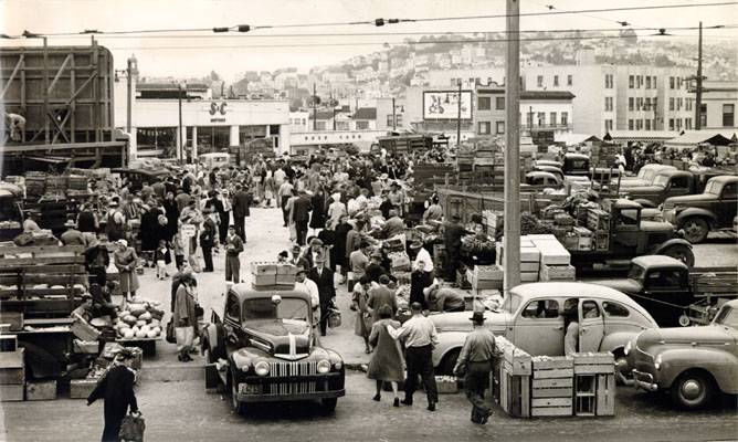 Joe Sanchetti was up earlier than usual on the morning of August 12,1943. He had a bumper crop of pears on his trees and quite a few had dropped to the ground. There was no market for his high-quality Sonoma County pears. While the fruit-starved people in San Francisco were paying 22 cents a pound for pears, Joe was lucky to get 4 cents a pound; that is, if there were any buyers. He was too far removed from the consumer. Joe and many other fruit growers in Sonoma, Napa, and Santa Clara Counties heard that farmers were welcomed in San Francisco and could sell their crops directly to the public. There was no middle man, no commission to be paid no consignment sales; just farmer to consumer and pure, hard cash.