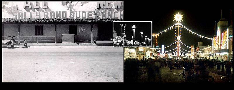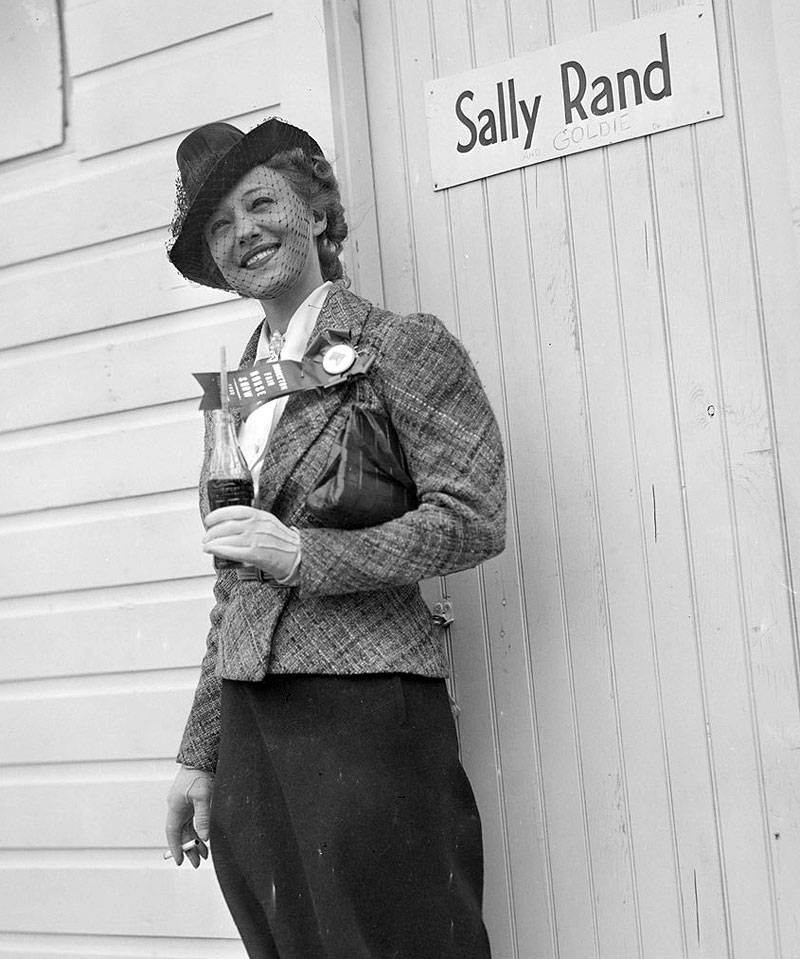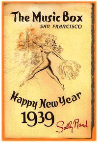 After achieving notoriety and stardom at the 1933 Chicago World’s Fair with her multiple arrests for feigned nude appearances, she moved to San Francisco and bought the Music Box burlesque hall in 1936 (later known as Blanco’s, and now as the Great American Music Hall on O’Farrell Street). She starred in “Sally Rand’s Nude Ranch” at the Treasure Island “Golden Gate International Exposition” in 1939-40.