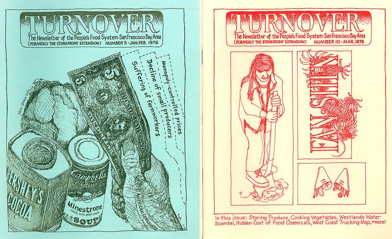 Covers of issues 9 and 10 of the People's Food System newsletter called "Turnover."