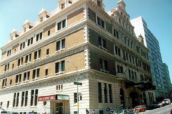 Das Deutsches Haus, a.k.a. California Hall, 625 Polk Street. In the early 1980's, this prime example of German Renaissance-style architecture was the scene of a notorious sex party celebrating the graduation of new San Francisco Police Department cadets. In one particularly celebrated incident, the cops handcuffed a cadet to a chair and forced him to submit to oral copulation by a female prostitute. The cadet, who was gay, felt humiliated, and the event became one of the landmark scandals of the Feinstein administration.