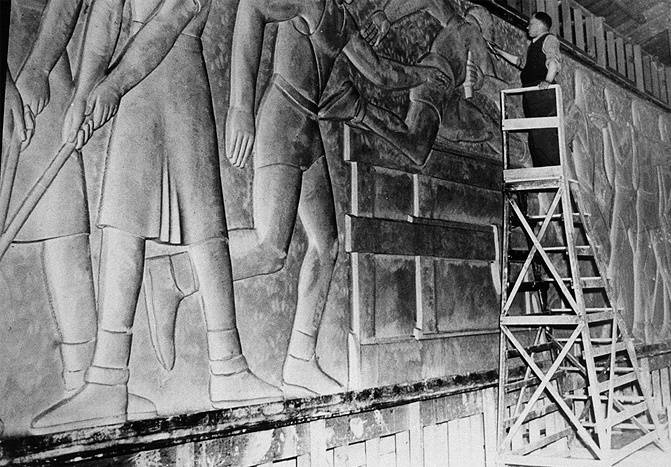 When Sargent Johnson, a former student of Beniamino Bufano, was selected by the WPA to replace Bufano as the artist for the massive relief frieze at Washington High School at 32nd and Anza, Johnson's design had to be submitted for approval to the SF Art Commission, which initially rejected it. Some of the committee members went on record declaring support for the retention of Bufano, whose design they had already approved. Johnson eventually won approval by creating a clay model 12 feet high and 3 feet long.