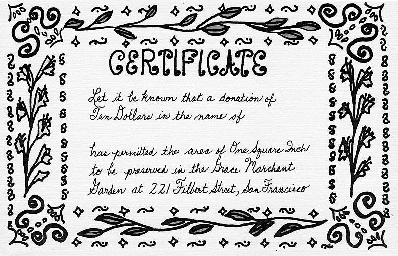 To help keep the Garden green, send contributions to Northeast San Francisco Conservancy (NESFC), a 501(c)3 organization, 470 Columbus Avenue, Suite 211, San Francisco, CA 94133, or donate at GraceMarchantGarden.com. All donations are tax deductible.