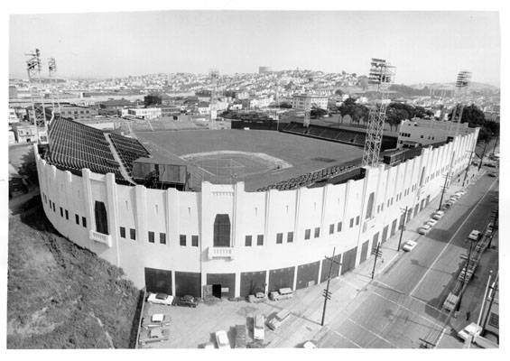 Seals Stadium anchored the block between Bryant and Potrero on 16th St. for about 30 years, and was home to the SF Giants in 1958 and 1959 when they first arrived in San Francisco. When Candlestick Park opened in 1960, Seals Stadium was destroyed, and replaced by a White Front department store, which in turn made way for an Auto Center and Safeway, and is now known as the Potrero Center, a new mall opened at the end of 1996.