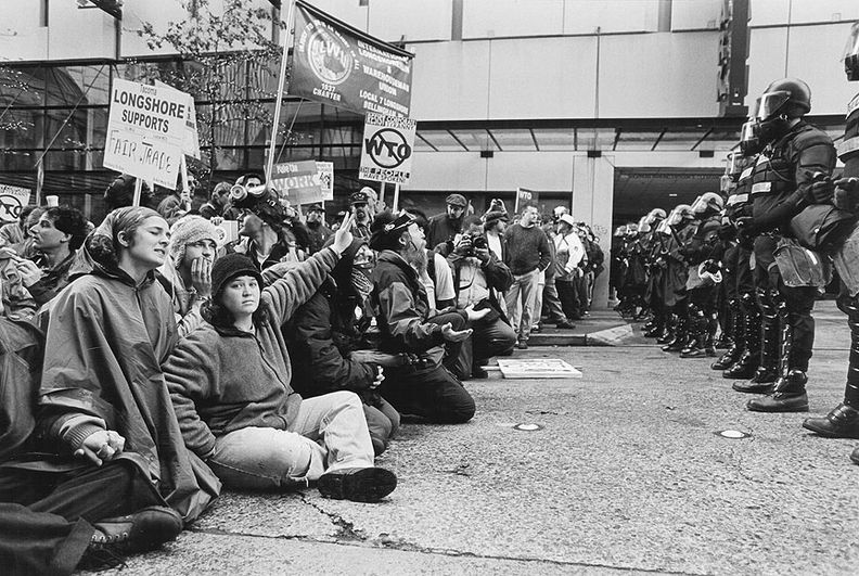 Dozens of sit-ins and blockades confronted delegates and police on the morning of November 30, 1999.