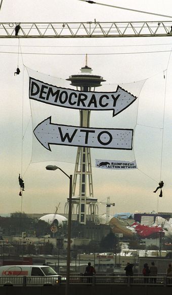 The ruling class ideology of endless prosperity and growth in a democratic capitalist world of "free" countries has suffered a slap across the face in Seattle. History has asserted itself. But what does history mean exactly in this context? Specifically, history means the inevitable re-emergence of class conflict. Seattle was many things to many people, but everyone there in opposition to the WTO knew that their interests were opposed to the corporate agenda for unfettered "free markets" and capitalist development. People from all walks of life, all ages, races, and nationalities, came together to raise their specific concerns, but for once saw that their issues were fundamentally connected to their fellow protesters and their issues. Thus the now famous slogan "Turtles and Teamsters: Together at Last" embodies a profound unity among people fighting for decent lives as workers, people fighting for a healthy relationship to global ecological well-being, people fighting sweatshops and child labor, people fighting to save old-growth forests and stop toxic waste dumping, people fighting to save subsistence agriculture and family farms, and so on.