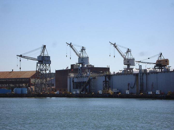 The shipbuilding business has closed, but there are still a few hundred ship workers here in one small section of the pier, doing mainly repair, chiefly for commercial ships.