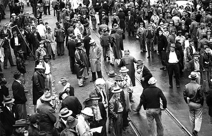 1941 Bethlehem Steel Strike, shipyard workers assembled on 20th Street east of Illinois.
