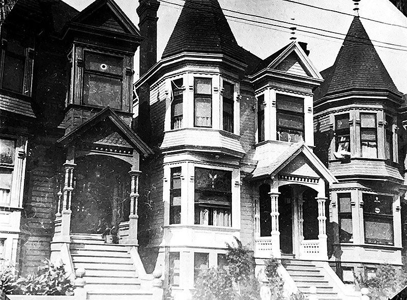 413 Shrader Street (center building) was the residence of the Scanlon family ca. 1904.