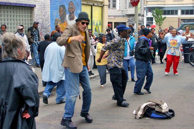 Positively Sixth Street, 2006. Sixth Street residents rock to the music of Bobby Webb, a perennial favorite among the fair’s headliners.